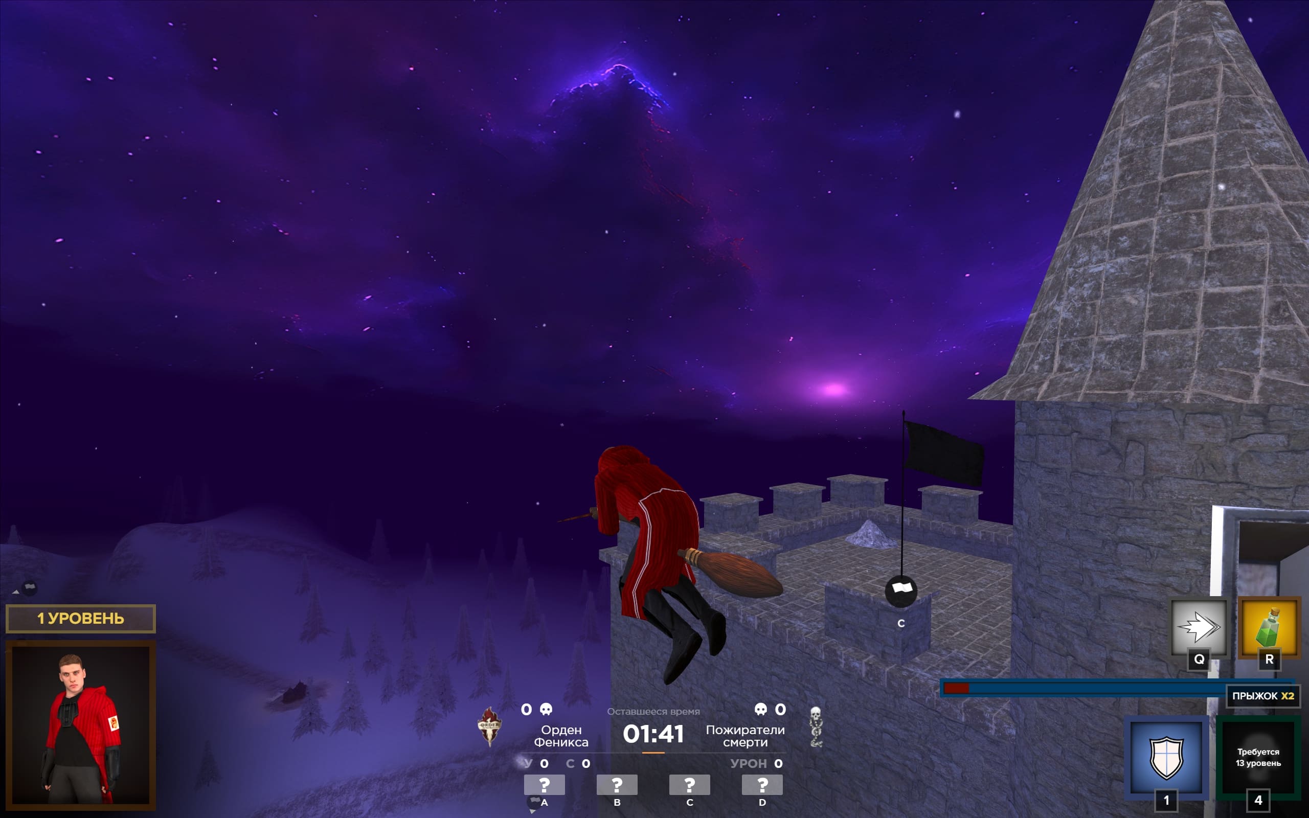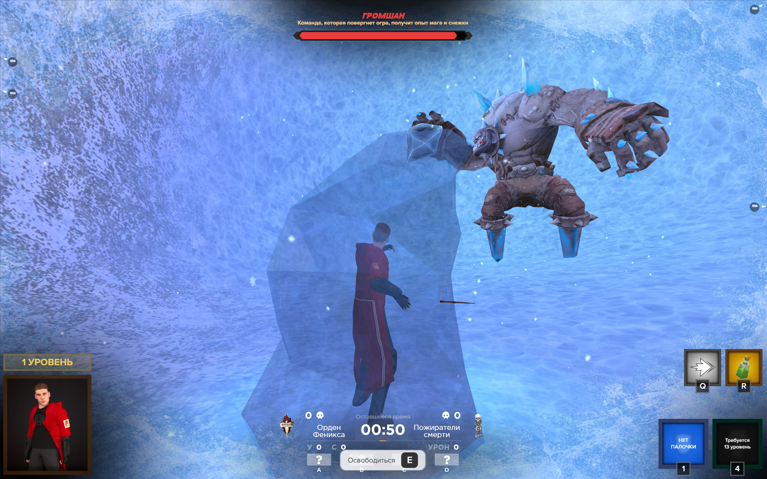Присоединяйся к Битве волшебников на стороне Ордена Феникса или Пожирателей СмертиУничтожай магических тварей, изучай новые заклинания, используй летающую метлу, захватывай точки и не забудь победить Грошана
