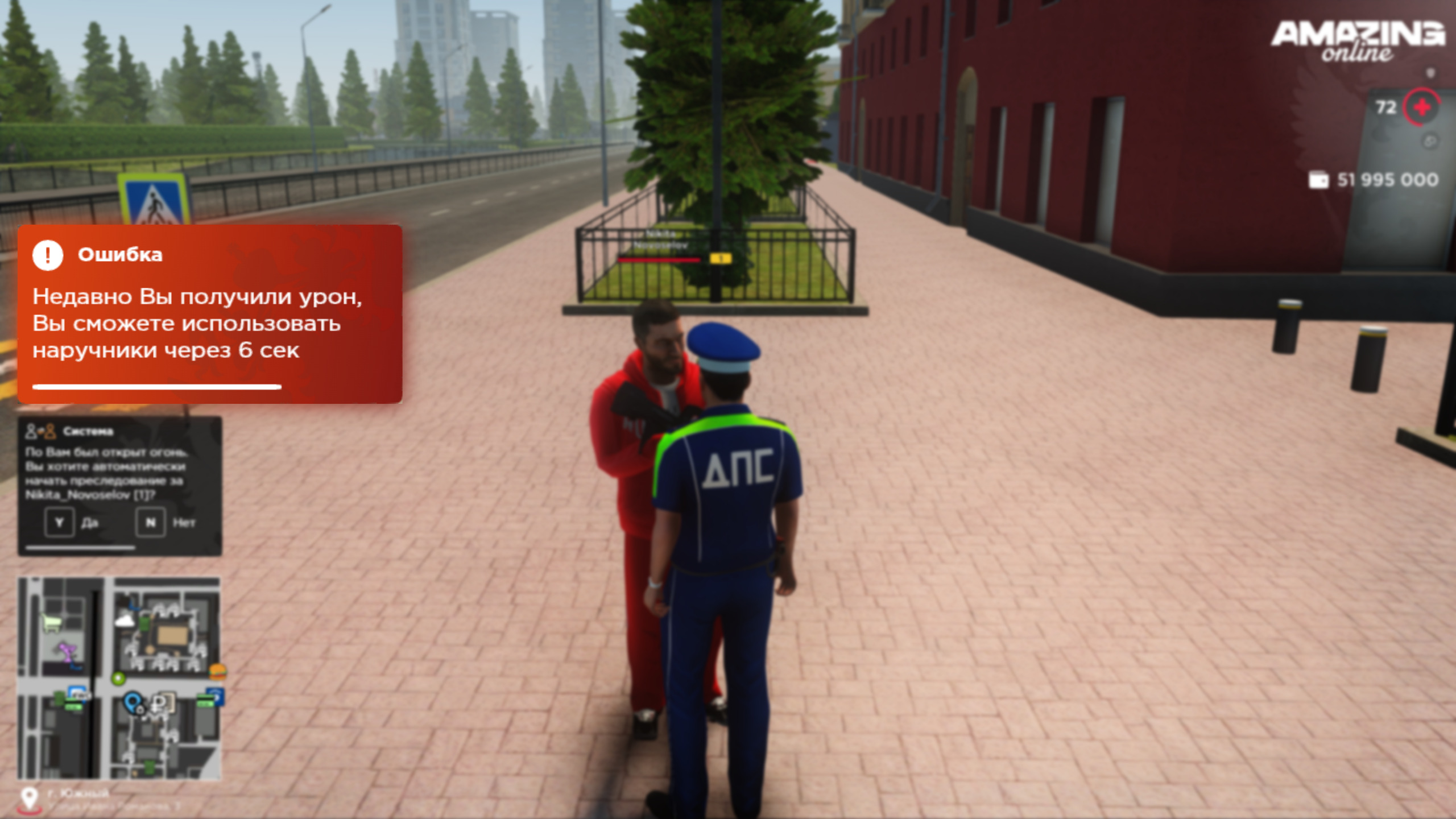 Использование наручников в бою (включая рукопашный) запрещено — ограничение действует 10 секунд после получения урона сотрудником государственной организации. Исключение: игроки, находящиеся в активном преследовании
