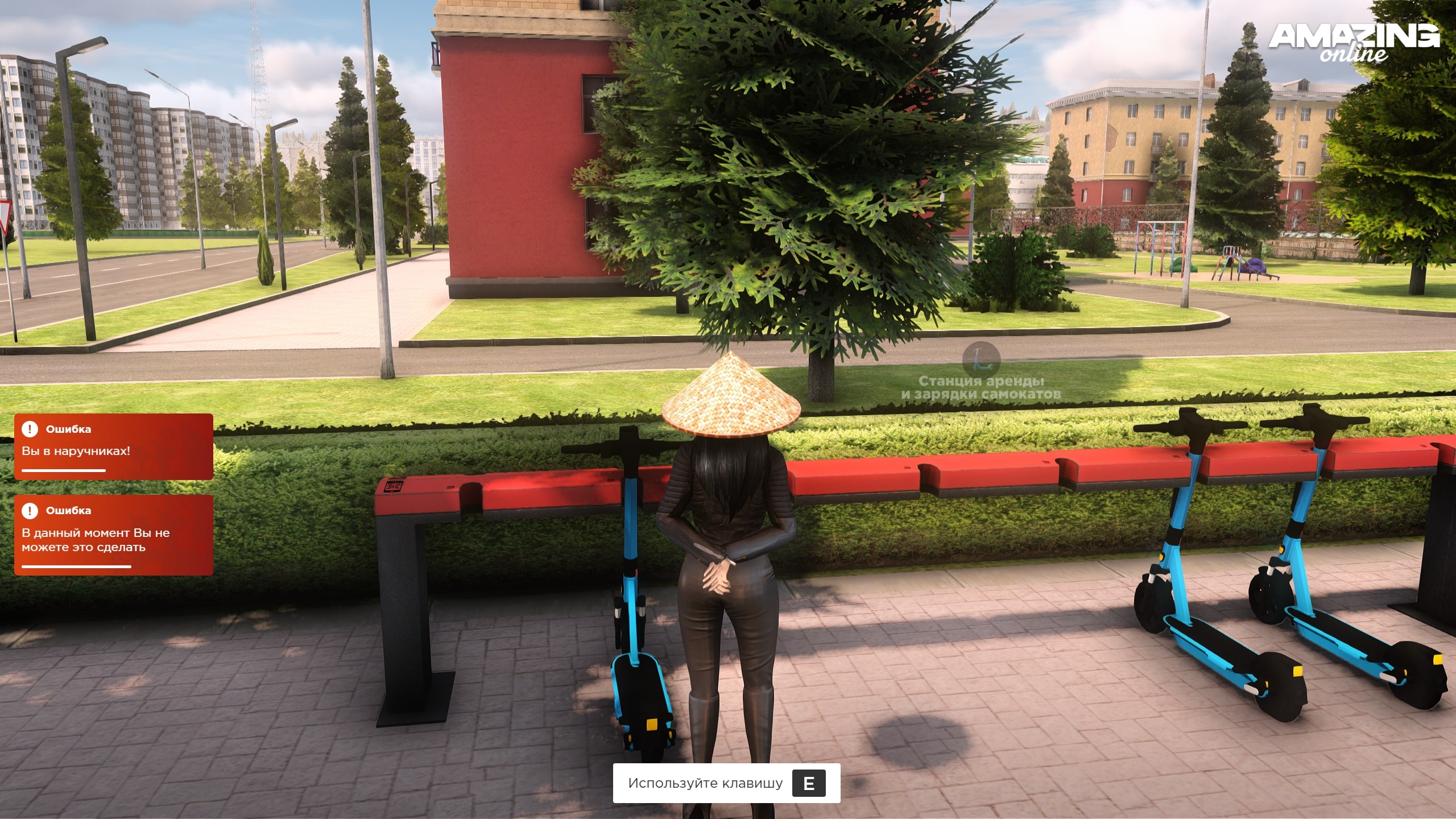 Если игрок в наручниках или стяжках, то арендовать самокат нельзя