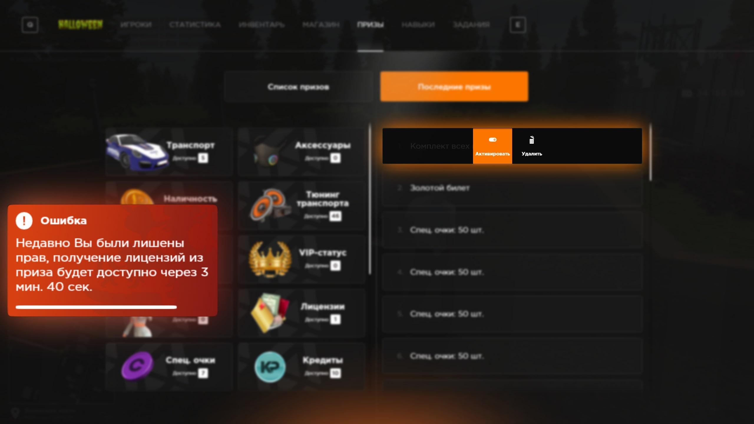 - При лишении прав или лицензий сотрудником, добавлено ограничение по времени в 5 минут на активацию лицензий из призов