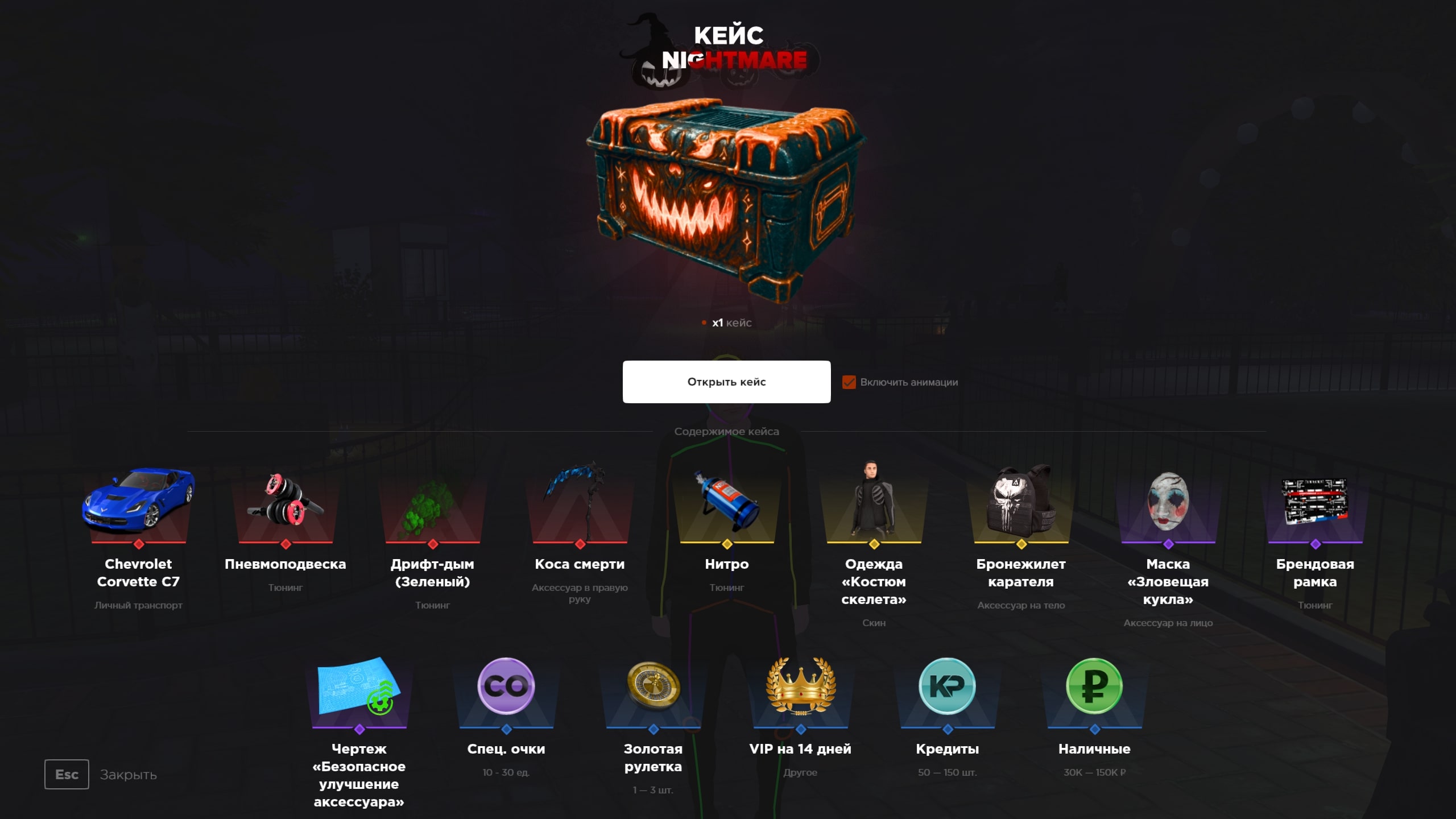 Новый кейс Nightmare включает в себя следующие призы: