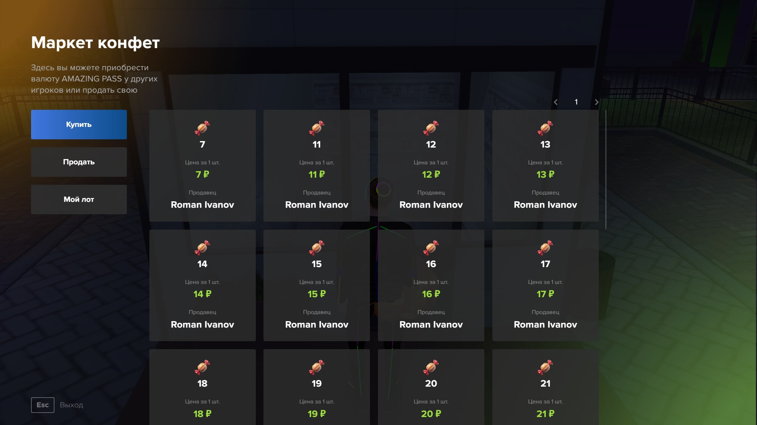 - Для владельца павильонов добавлена история покупки/продаж в павильоне (30 покупок/30 продаж)